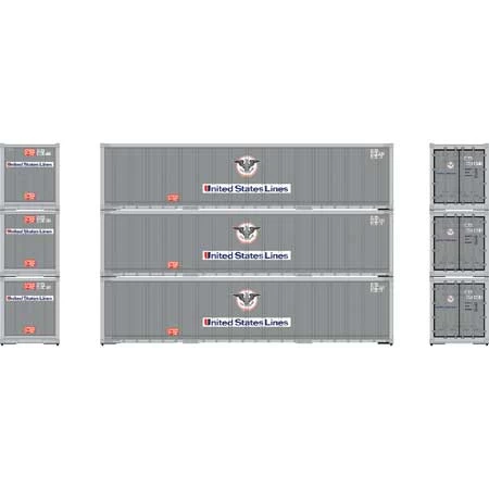 Athearn 63390 HO Scale 40′ Smooth Side Container United States Line USLU