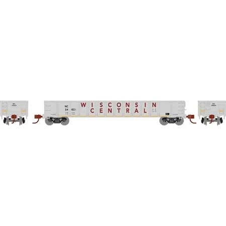 This is an Athearn 8392 HO Scale Wisconsin Central RTR 52′ Mill Gondola #54001. Features: Body-mounted McHenry operating scale knuckle couplers, New 3-packs make modeling a complete train easy, Separately applied wire grab irons and etched end platforms, Razor sharp painting and printing, Weighted for optimum performance, Fully assembled and ready for your layout, Razor sharp painting and printing, Multi-packs feature unique road numbers, Minimum radius: 18.