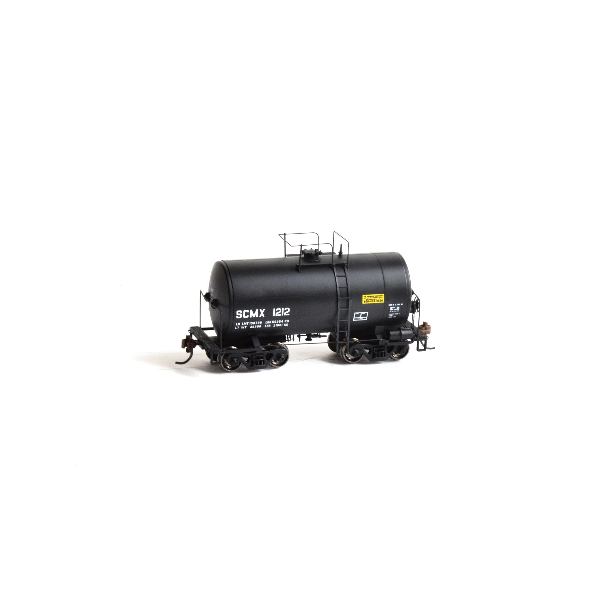 This is an Athearn 89149 HO SCMX 30′ NACC 8,000-Gallon Tank Car RTR #1212. Features includes three road numbers, seperate manway and vent, photo-etched metal platforms, wireform end and platform railings, separately applied ladders with bracing, separately applied brake gear including air reservoir and brake wheel, full underside detail including outlet, fully assembled, Perfect for small home layouts, accurately painted and printed. Highly detailed, injection molded body, weighted for trouble free operation, Ready-To-Roll 100-ton roller bearing trucks, machined 36 metal wheels with RP25 contours operate on all popular brands of track, body mounted McHenry® operating AAR upper and lower shelf scale knuckle couplers, window packaging for easy viewing plus interior plastic blister safely holds the model for convenient storage, minimum radius: 18.