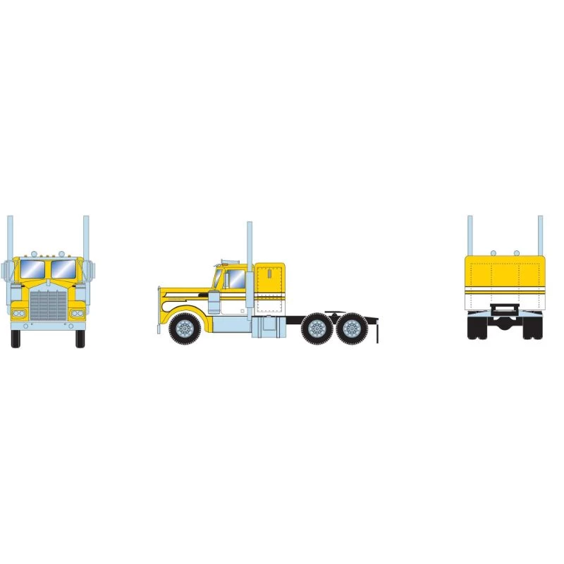 This is a Athearn 90308 HO Yellow Mack R 3-Axle Tractor