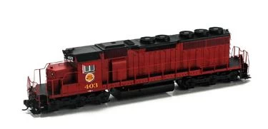This is an Athearn 98853 HO CGW SD40 Diesel Engine with DCC & Sound RTR #403. All Road Numbers features Nose mounted dual gyralight clear lens illuminated, red dummy lens, Nose mount brake ratchet, Early standard range dynamic brakes, Leslie air horn, Early fans, 3200 gal fuel tank, Early style 4 position MU hoses, Frame mount bell, Conductor side 3 short stanchion handrails, Low mount brake cylinders, Whip antenna. This features Fully assembled and ready-to-run, Separately applied wire grab irons, Separately applied air tanks, Coupler cut levers, MU hoses, Fine scale handrails molded in engineering plastic, Standard twin sealed-beam headlight with anti-glare shields (unless noted), Sliding cab windows, See-through dynamic brake and radiator fans, Curved radiator fan grab iron, Exhaust stack, Frame mounted bell (unless noted), Detailed 4000 gallon fuel tank (unless different capacity is noted), Flexicoil-C trucks with high or low brake cylinders (per prototype), McHenry scale knuckle spring couplers, Highly-detailed, injection molded body featuring new tooling, Painted and printed for realistic decoration, See through cab windows, Bi-directional constant lighting so headlight brightness remains consistent, With Sound version features RTR Sound by Soundtraxx, All-wheel drive with precision gears for smooth and quiet operation, All-wheel electrical pickup, 5-pole motor with flywheels and multi-link drivetrain for trouble-free operation, Wheels with RP25 contours operate on Code 55, 70, 75, 83, and 100 rail, Window packaging for easy viewing, Interior plastic blister safely holds the model for convenient storage, Minimum radius: 18, Recommended radius: 22. Sound equipped models also features Onboard RTR Sound by SoundTraxx DCC decoder, Sound units operate in both DC and DCC, Full DCC functions available when operated in DCC mode, Engine, horn, and bell sounds work in DC, All functions NMRA compatible in DCC mode, Excellent Slow speed control, Operating lighting functions with F5, Program a multiple unit (MU) lashup with lead unit only horn, bell, and lights, Many functions can be altered via Configuration Value (CV) changes.