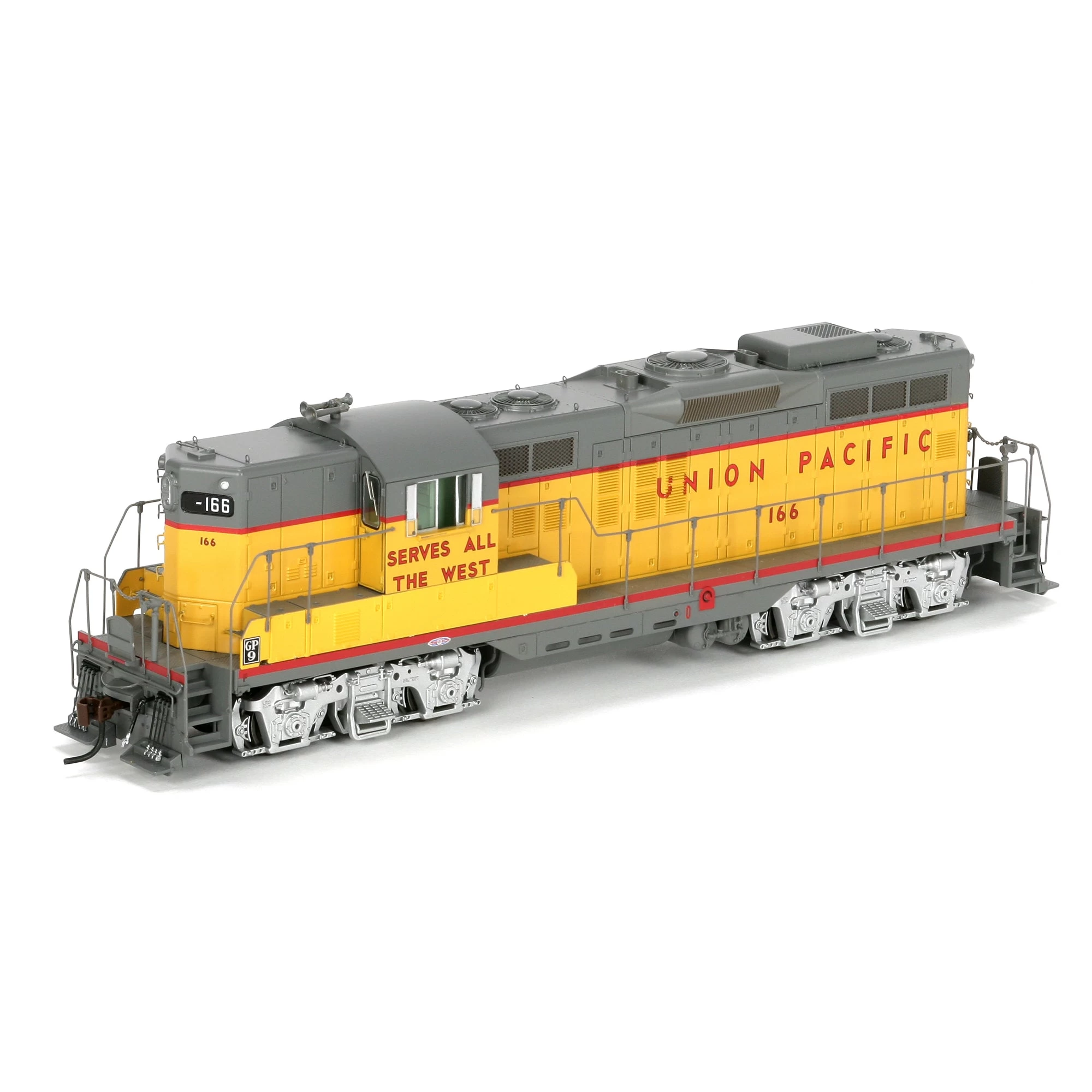 This is an Athearn G62424 HO Scale Union Pacific GP9 Diesel Locomotive #166. Its key features are: Genesis driveline with dynamically balanced five pole skew wound motor and dual flywheels