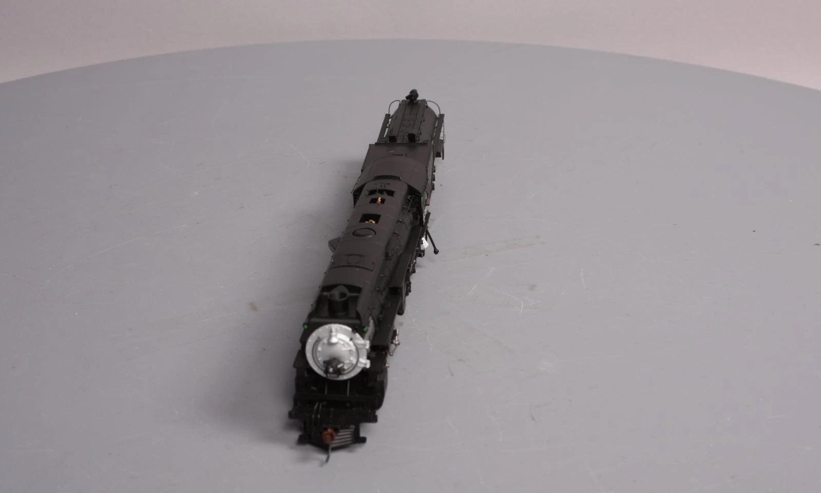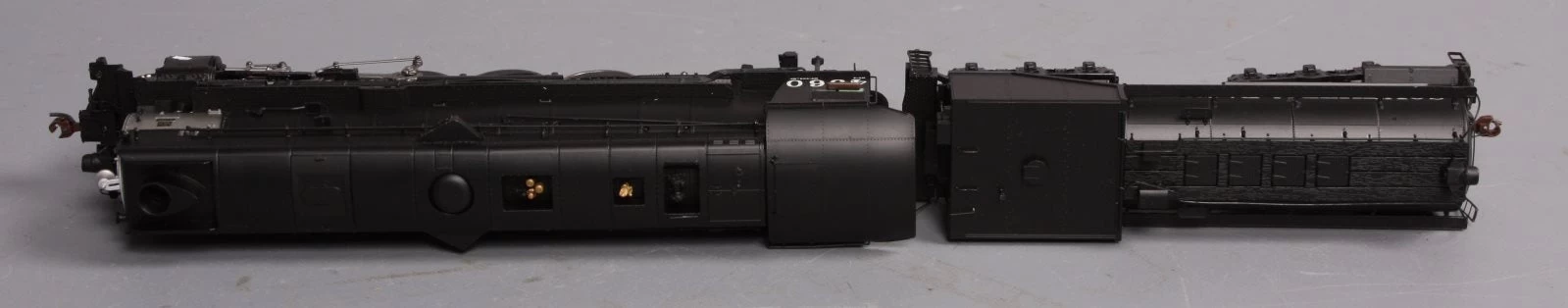 Boiler backhead with full details and printed gauges. Individually applied detail parts like piping, valves and generators. Adjustable cab windows and opening doors. Cab hatches can be opened and closed. See-through running boards. Blackened metal wheels. 22″ recommended minimum radius. Front coupler pocket can be inserted to mount operating coupler. Smoke unit ready with no soldering needed. McHenry scale knuckle spring couplers installed. Factory installed SoundTraxx Tsunami sound and DCC decoder with speaker mounted in the tender. Tsunami sounds are compatible with both DCC and DC operation. Includes class 120-C-6 tender.