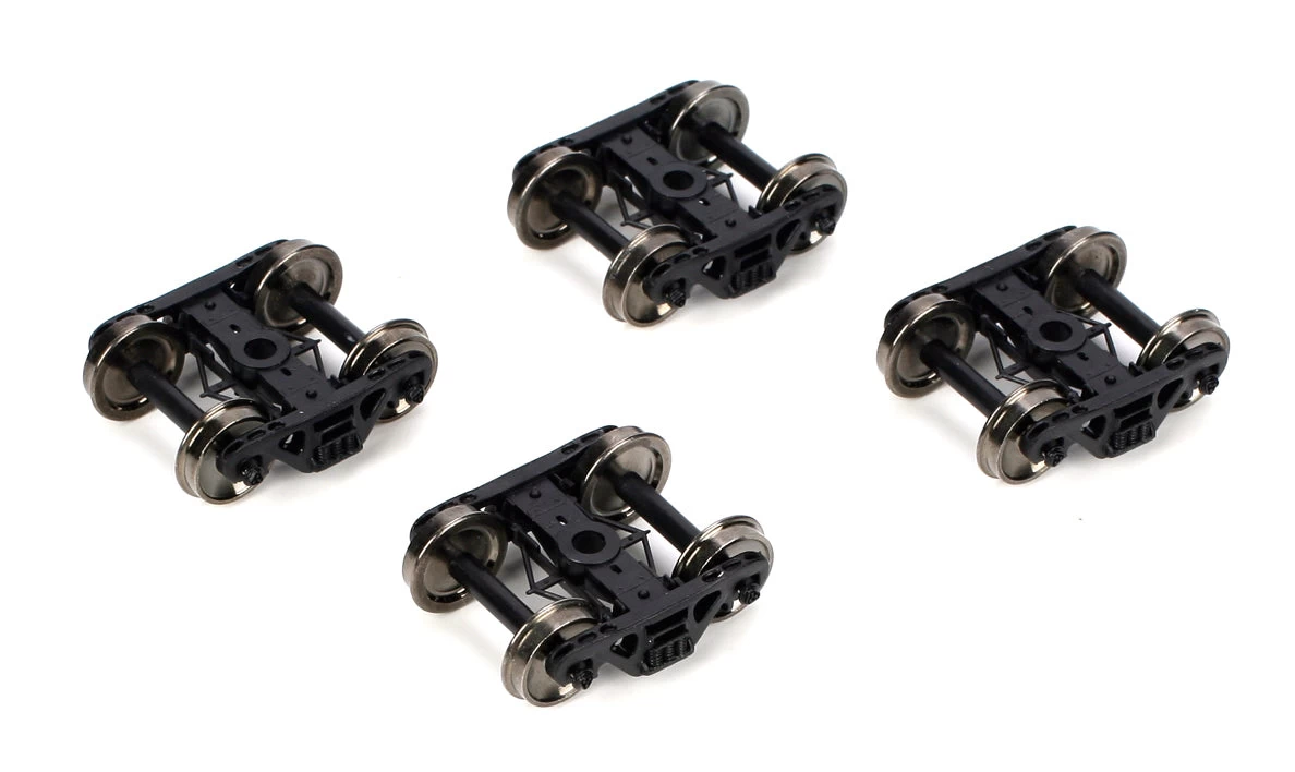 Athearn Genesis trucks feature machined metal wheels with RP25 contours and either .110” or .088” tread, and animated spinning roller bearing caps. Trucks are compatible with all popular brands of prefabricated track.