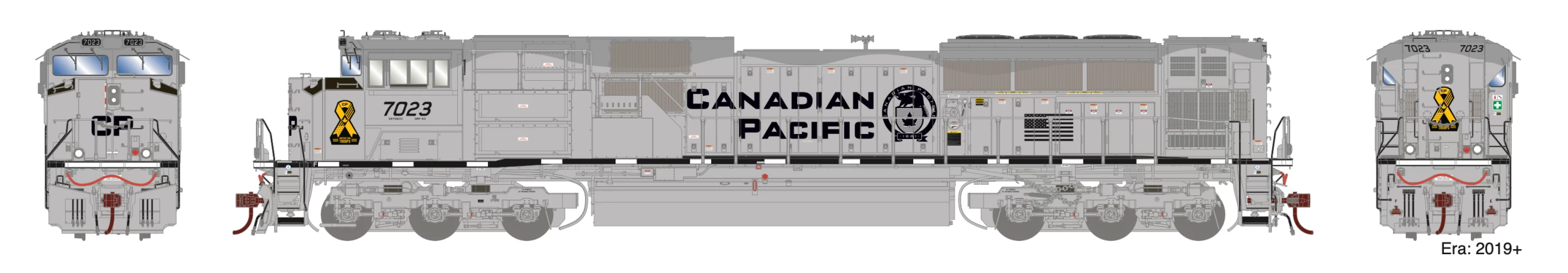 In September of 2019, CP unveiled two Heritage painted locomotives in the Tuscan and Grey paint schemes; one unit, 7010, using the Canadian Pacific script lettering and the other
