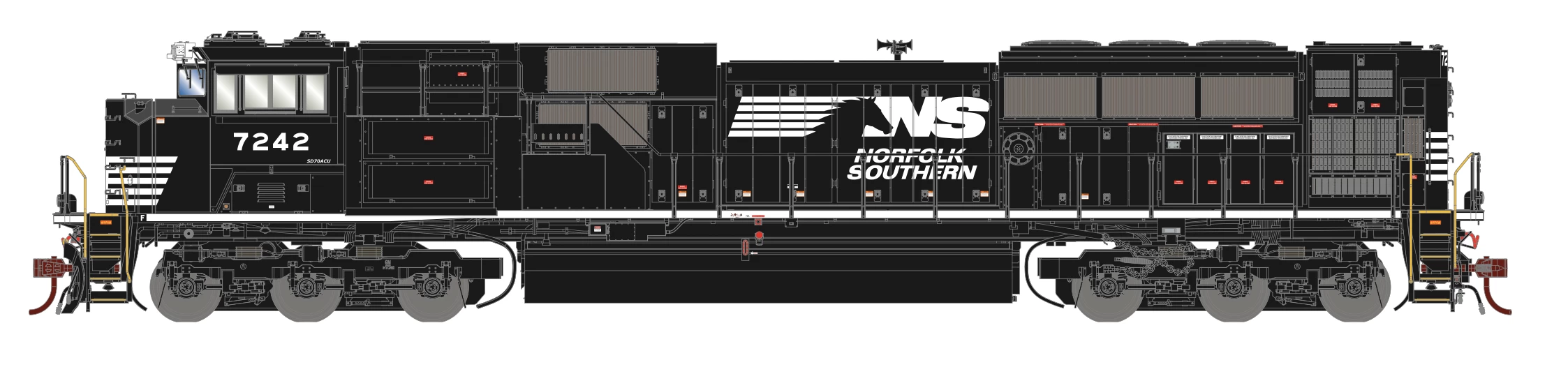 Starting in 2016, NS began the SD70ACU capital rebuild program using the SD90MAC units as cores. All major components were either overhauled or replaced, including an overhaul of the 710G3C prime mover. Most notable in the rebuild is that from the electrical cabinet forward, all new components were used, including a new ACe style isolated cab with AAR-style control stand. The new electrical cabinet contains Mitsubishi electronics, replacing the 90MAC’s original Siemens equipment.