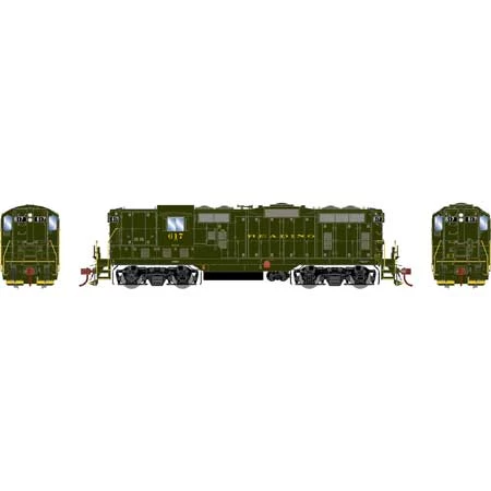 In 1954 EMD upgraded the GP7 to become the 1,750 horsepower GP9. Externally, the first GP9s were virtually unchanged from the last GP7s. Later versions would include different louver arrangements and the last ones would come without the frame skirting. The GP9 was available with all of the fuel tank, steam generator, and dynamic brake options as the GP7, including “torpedo tube” air tanks mounted on the roof.